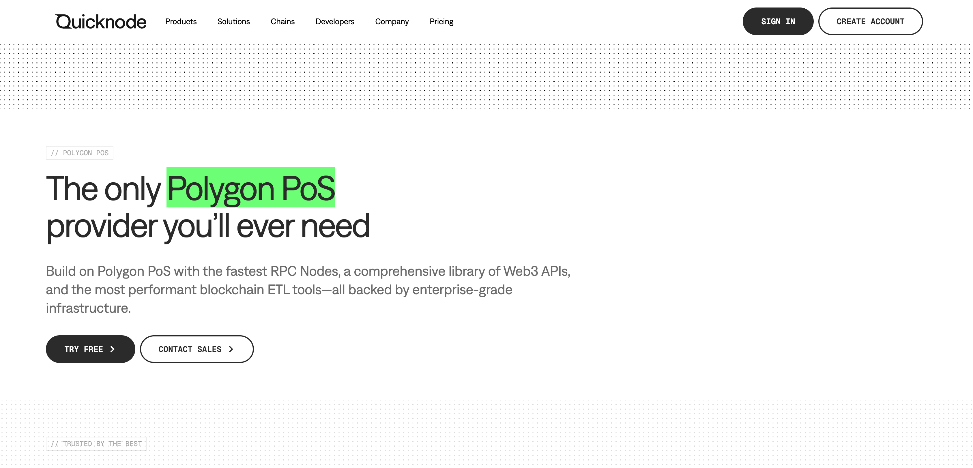 - Enterprise Polygon Workloads: Strong — SOC 2 Type II, reliable public uptime positioning, dedicated infrastructure
