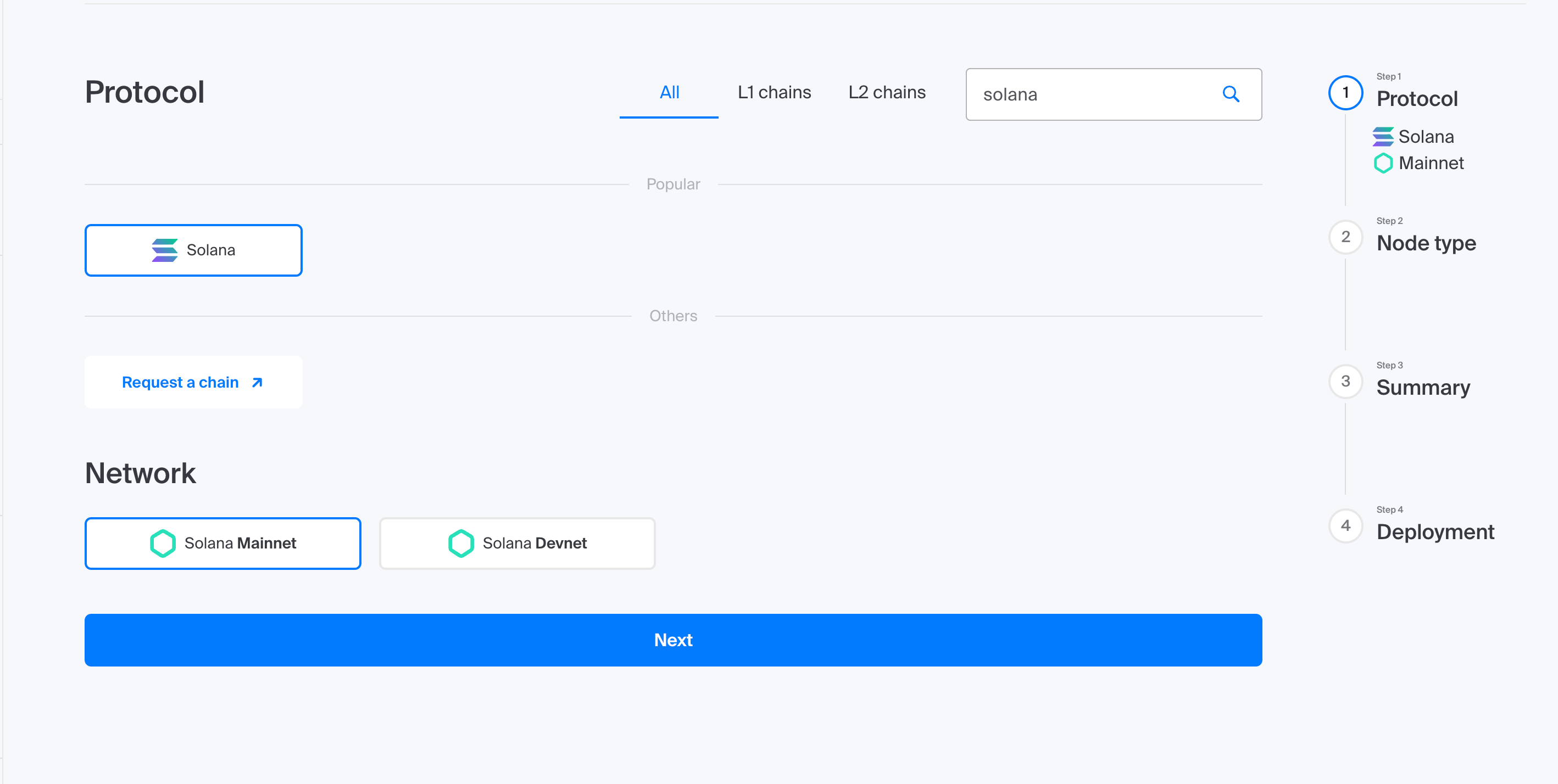 With Chainstack, that’s all built in. You can deploy a Solana RPC endpoint in under a minute and start sending requests right away with a few short steps: