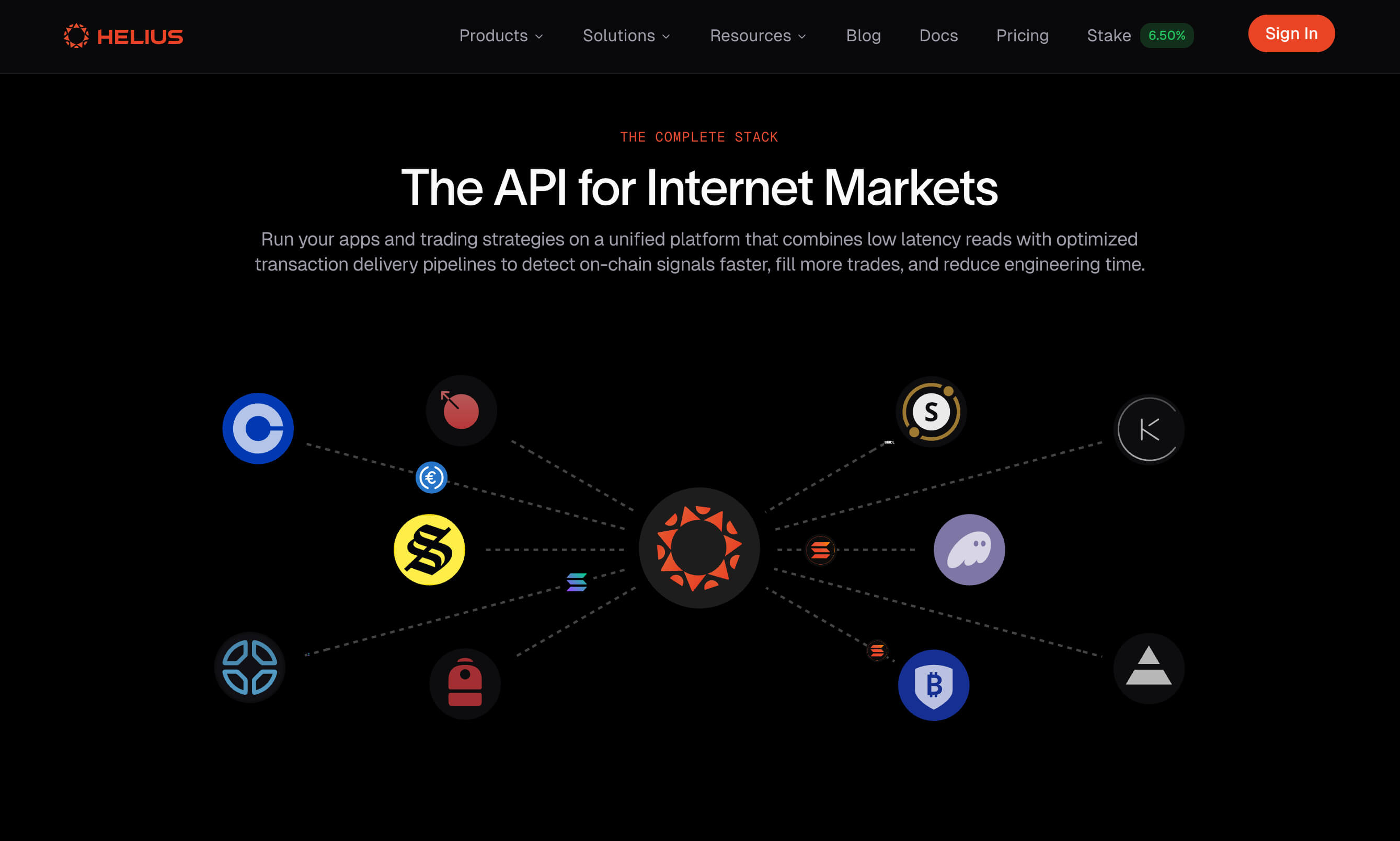 Helius is a Solana-focused RPC and data platform that bundles staked RPC sends, Sender’s parallel submit path to Jito, Yellowstone-compatible LaserStream with replay and regional failover, faster Enhanced WebSockets, and DAS APIs for assets and transactions, all wrapped in a credit-based model with clear RPS caps and optional fixed-rate streaming tiers.