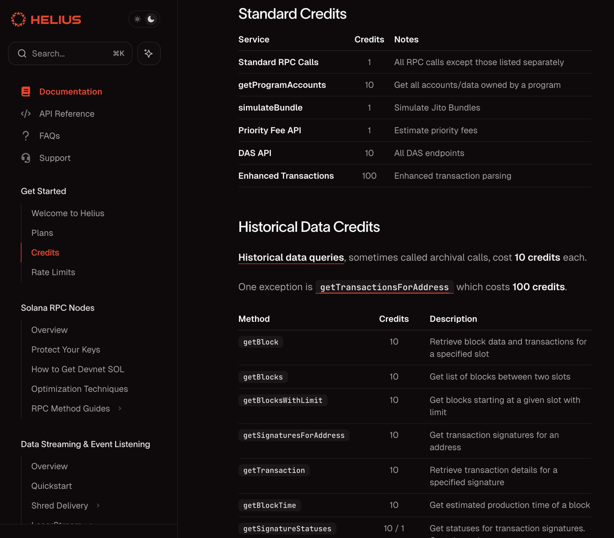 - Helius: Credit plans + data add‑on for streaming; good when you want granularity and can size your data budget.
