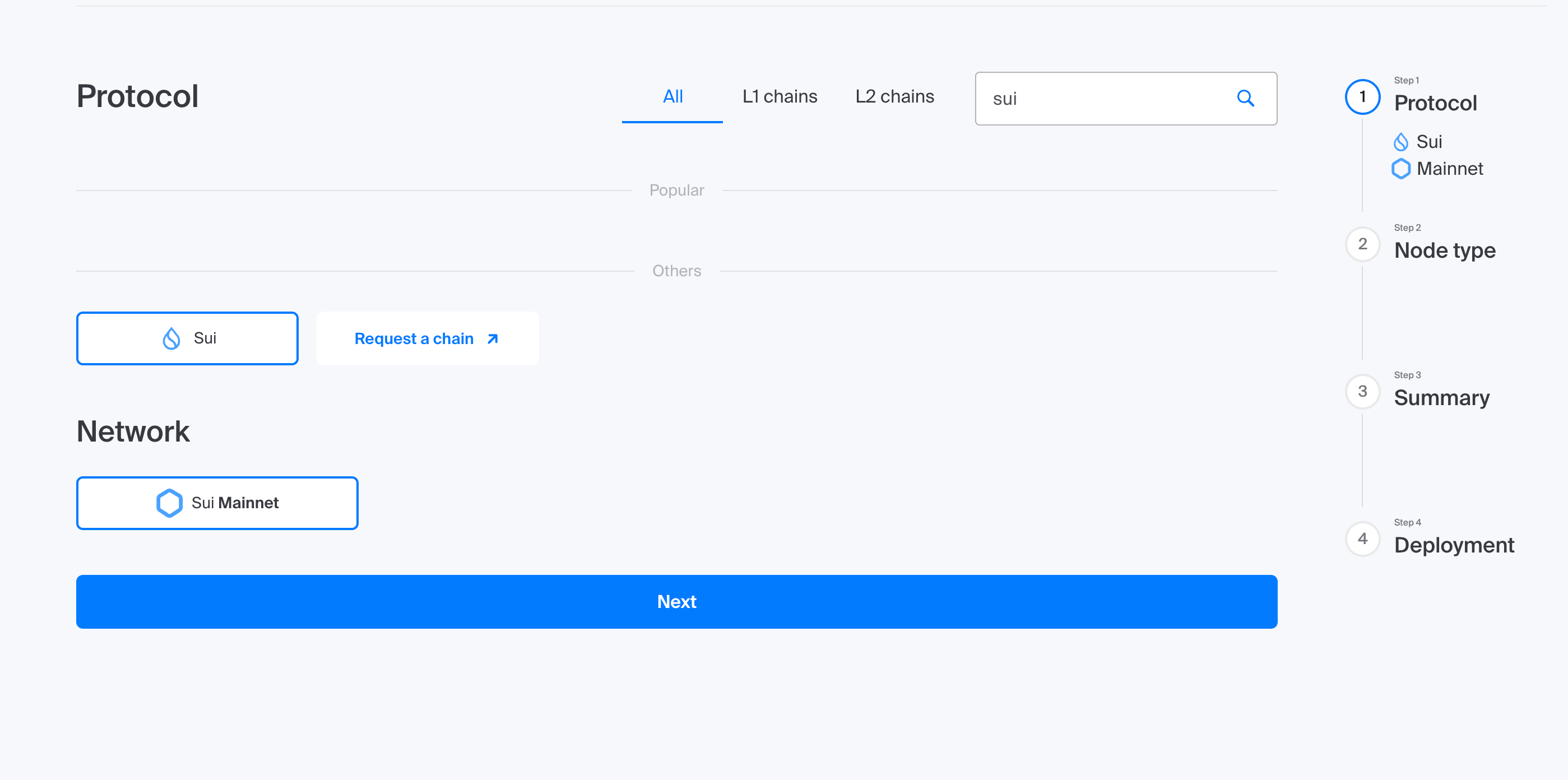- Select Sui as your blockchain protocol.