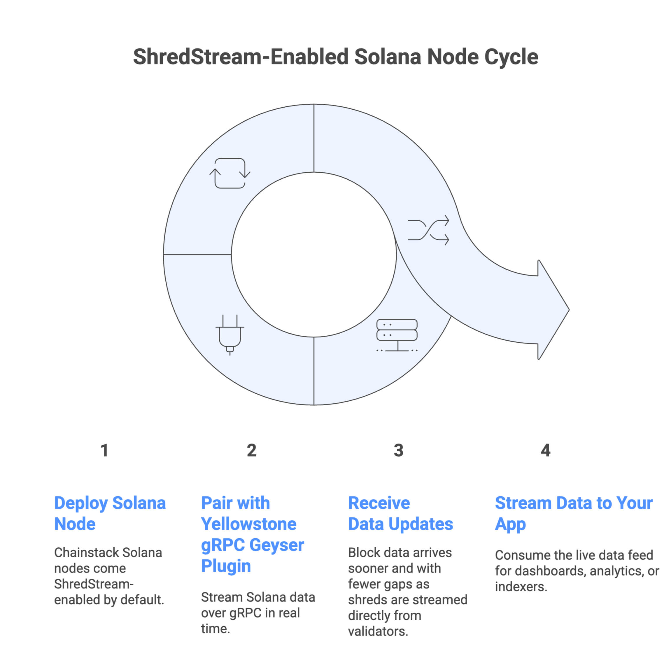 How you use it depends on your setup. If you run your own node, you can connect through the public ShredStream network, though configuring and maintaining it adds operational overhead. The simpler path is using an infrastructure provider that has already integrated it into their stack, like Chainstack.