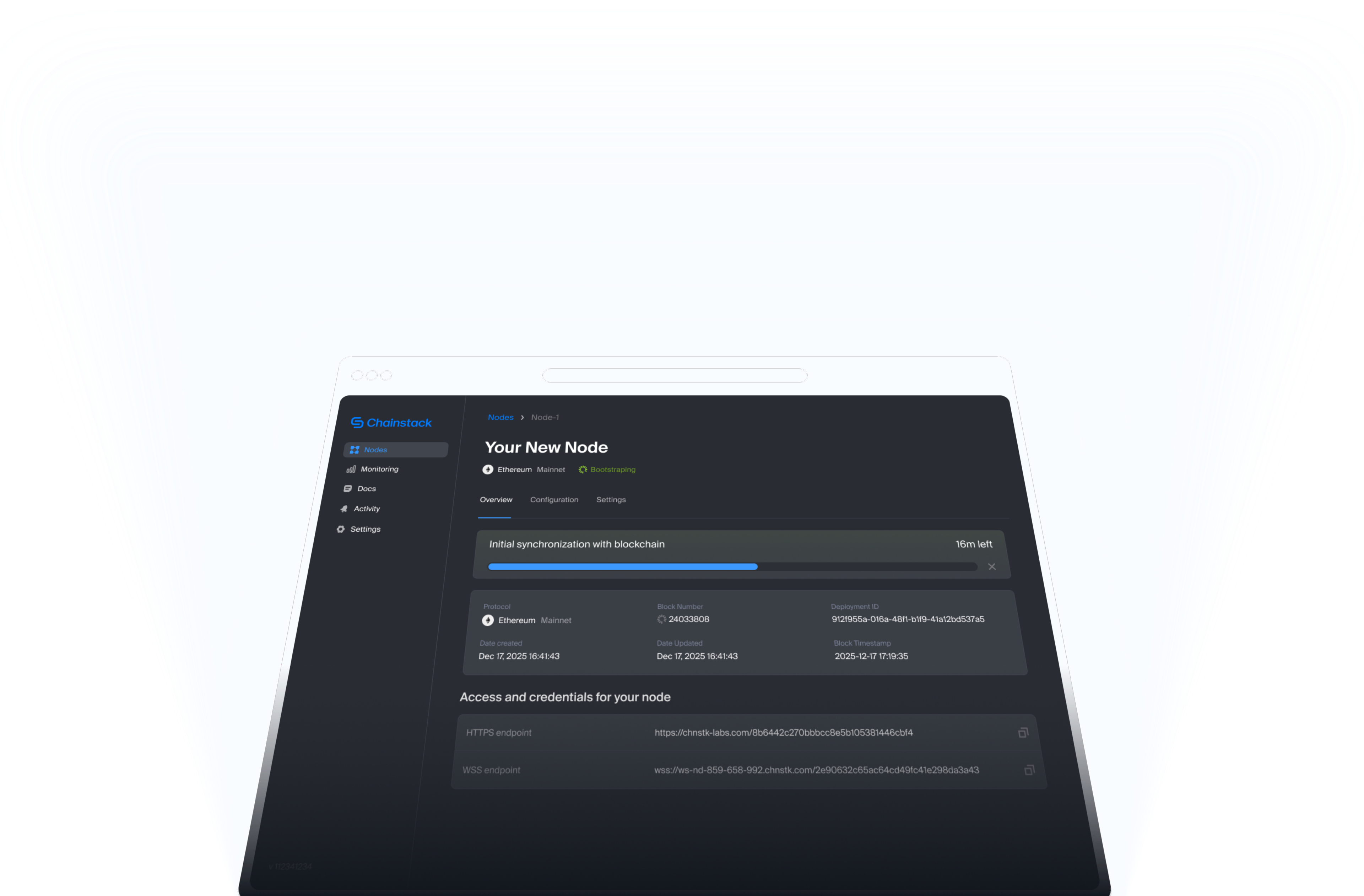 Launch a self-hosted node in minutes by selecting the protocol, network, and node type. Right-sized node configurations help ensure optimal performance, and snapshots significantly reduce initial sync time.