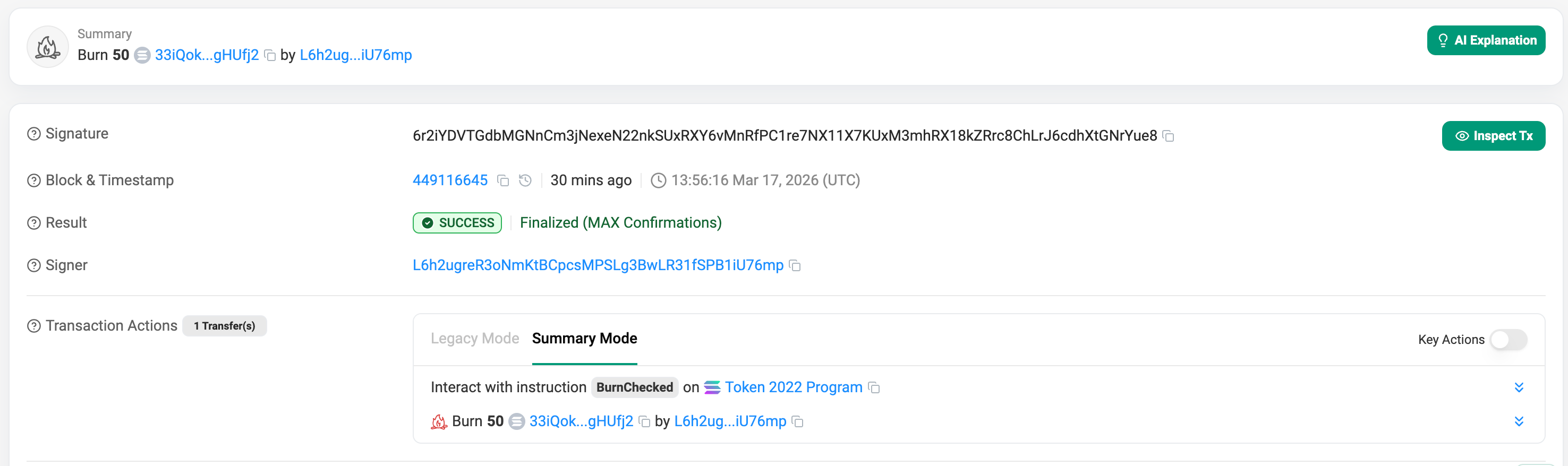 The transaction succeeds. The Token-2022 program checks the Mint, sees that We are the Permanent Delegate, bypasses Someone’s wallet ownership authority entirely, and burns the tokens.