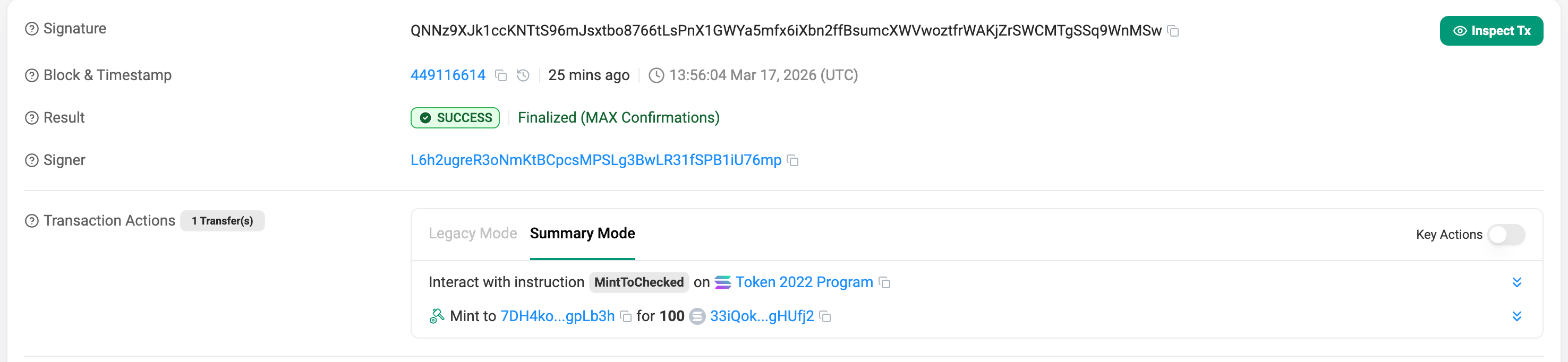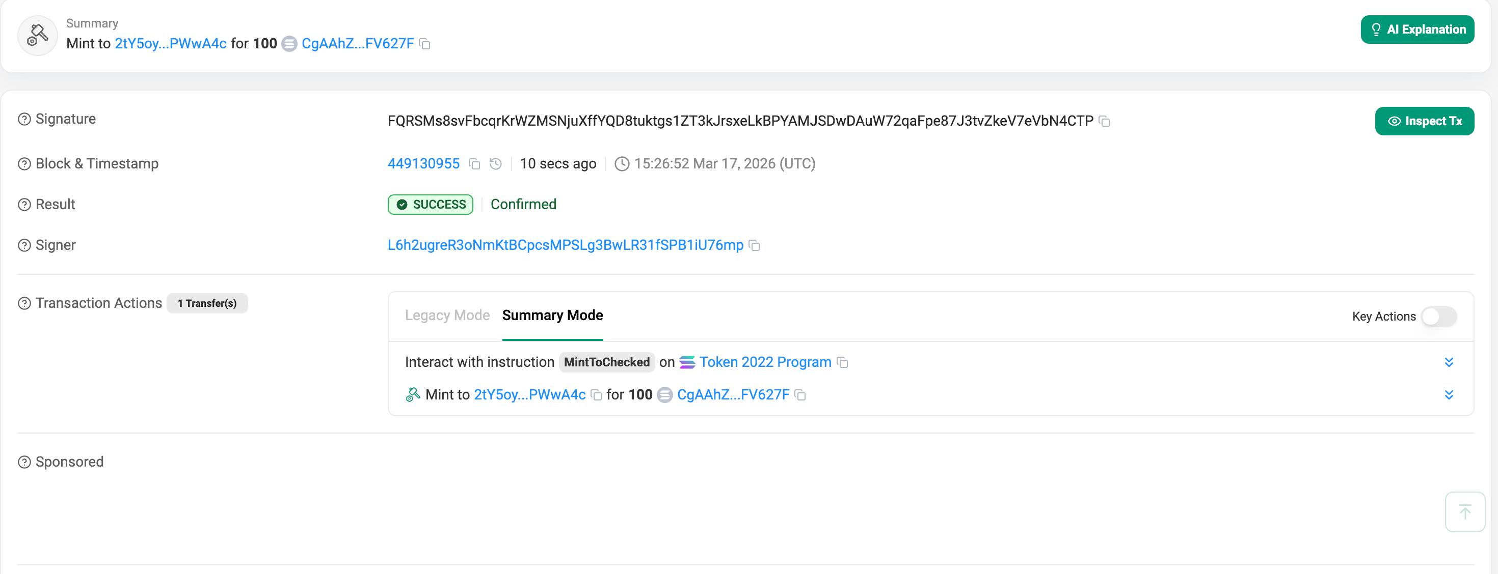 Now that this user is legally verified and the account is thawed, Our backend tries the exact same mint command again.