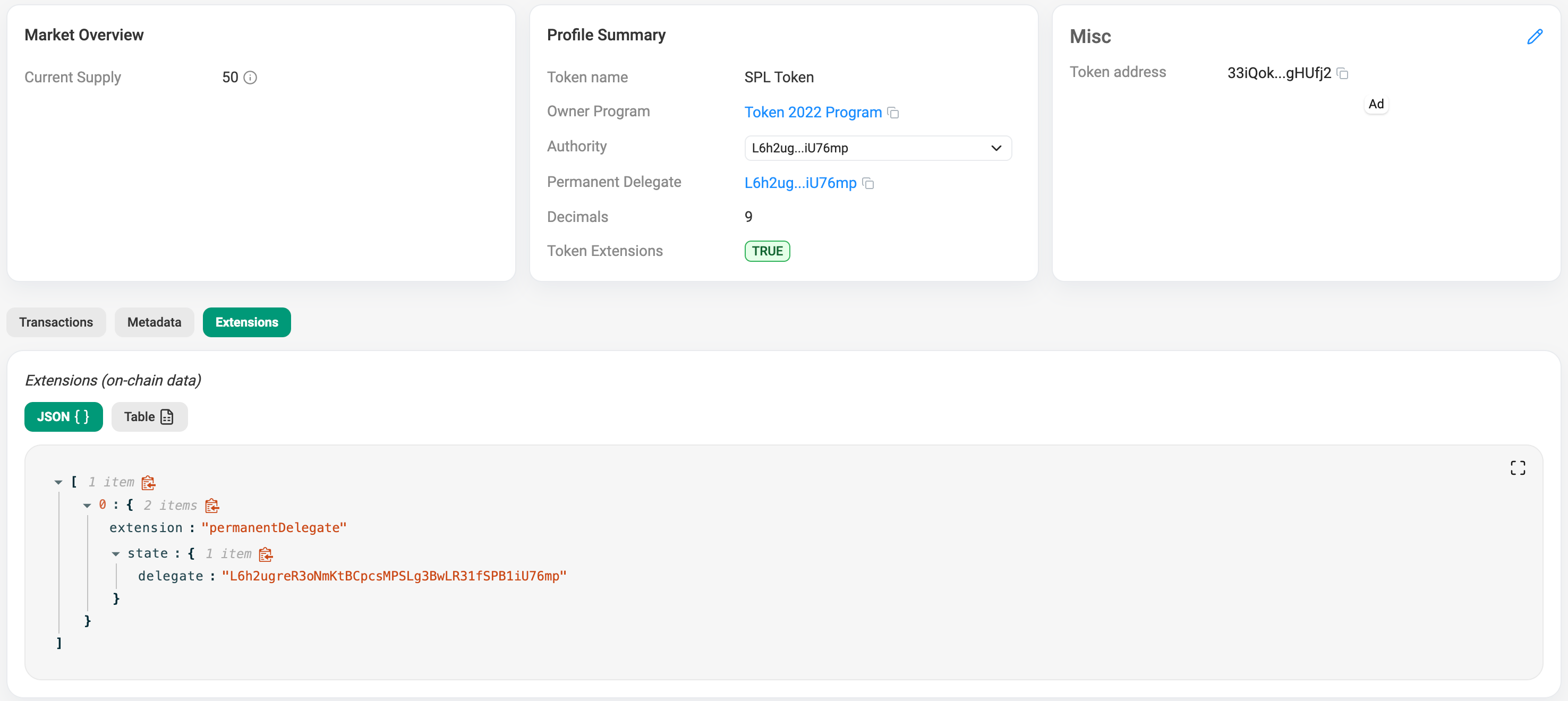 We can see the created PermanentDelegate extension for our token.