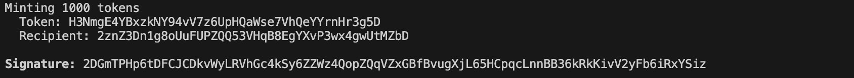 spl-token mint H3NmgE4YBxzkNY94vV7z6UpHQaWse7VhQeYYrnHr3g5D 1000