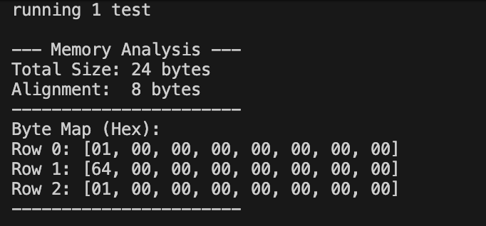 _padding1: Becausevolumeis au64, the CPU requires it to start at an 8-byte boundary. Sinceversiononly takes 1 byte, there is a 7-byte “hole” before the next 8-byte boundary. By defining_padding1, we turn that hole into a real field, satisfying theNoUninitrequirement._padding2: A struct’s total size must be a multiple of its alignment (in this case, 8). Our data totals 17 bytes (1+7+8+1). To reach the next multiple of 8 (24 bytes), we add 7 more bytes of padding at the end.