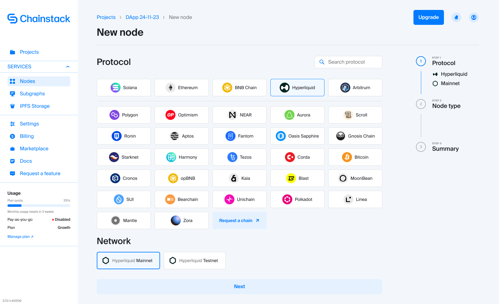 What’s more, with Chainstack, you get a full set of tools that make building on Hyperliquid easier, all from the same platform, including:
